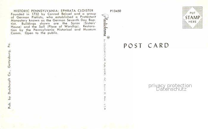 72848182 Pennsylvania US-State Ephrata Cloister postalisch nicht gelaufen Erhaltung siehe scans [KathaD81] KatCode: 14140410000000