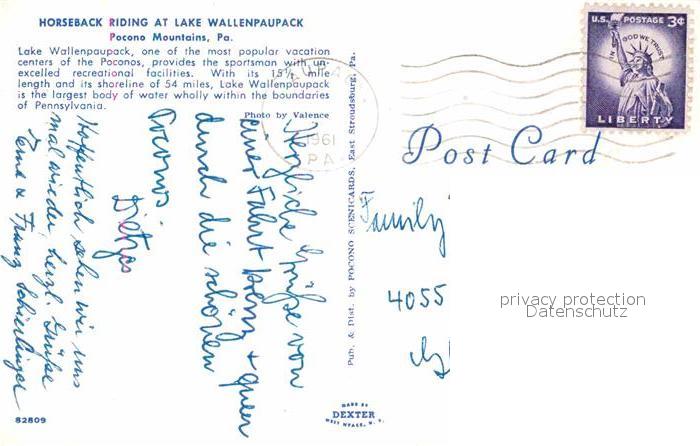 72837334 old postcard Pennsylvania US-State Horseback Riding at Lake Wallenpaupack postalisch gelaufen Erhaltung siehe scans [FriedD77] KatCode: 14140410000000
