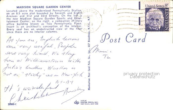 71964714 old postcard Pennsylvania US-State Madison Square Garden Center postalisch gelaufen Erhaltung siehe scans KatCode: 14140410000000