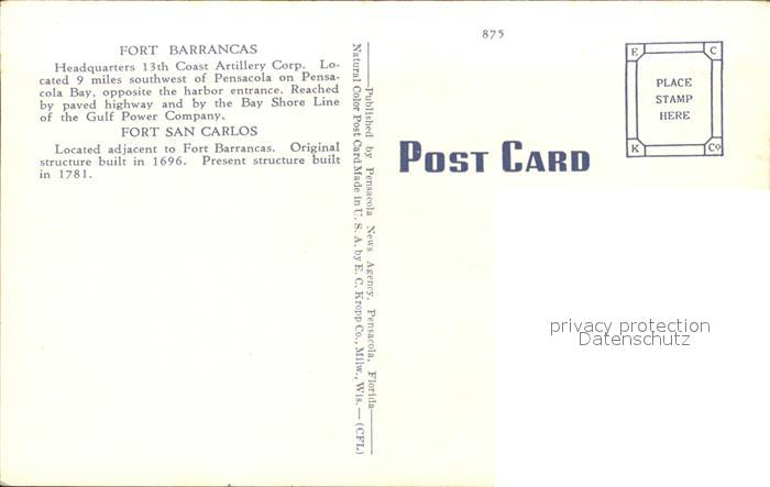 11688122 Pensacola Fort Barrancas San Carlos Mccrea in distance postalisch nicht gelaufen Erhaltung siehe scans KatCode: 14140110000000