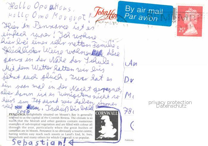 12719949 old postcard Penzance Fliegeraufnahme postalisch gelaufen Erhaltung siehe scans [NatalD47] KatCode: 11570UKK3K30UB