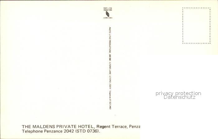 Penzance Penwith The Maldens Private Hotel postalisch nicht gelaufen Erhaltung siehe scans