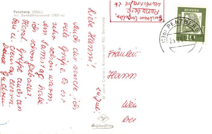 73914575 alte Postkarte Penzberg Fliegeraufnahme mit Benediktenwand postalisch gelaufen Erhaltung siehe scans [WerneD78] KatCode: 11110009190141
