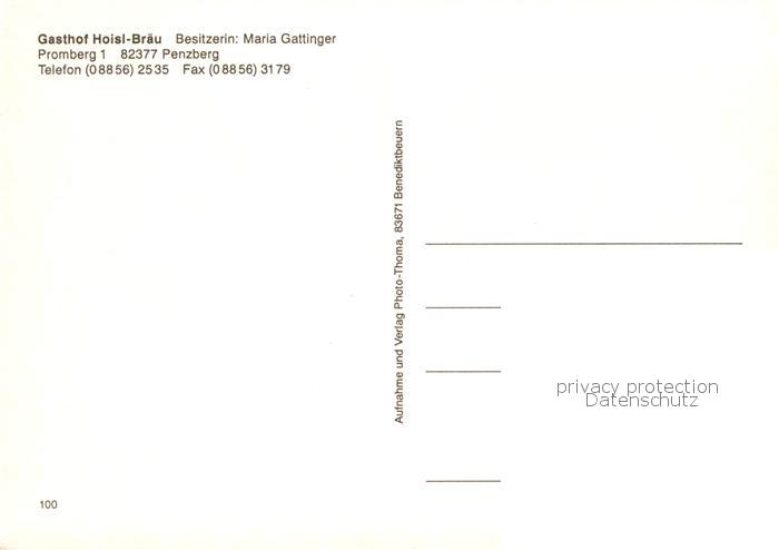 73845552 Penzberg Gasthof Hoisl Braeu postalisch nicht gelaufen Erhaltung siehe scans [WerneD78] KatCode: 11110009190141