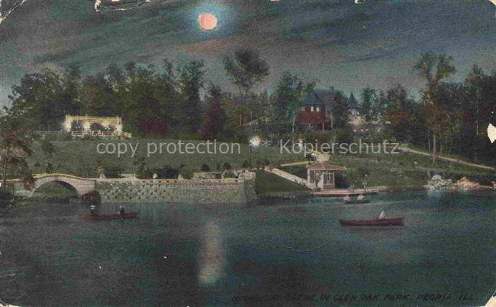 74123780 old postcard Peoria Illinois USA Glen Oak Park at night postalisch gelaufen Erhaltung siehe scans [FriedD77] KatCode: 14140150000000
