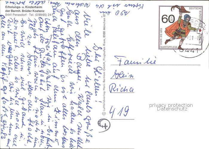 72276926 alte Postkarte Perasdorf Fliegeraufnahme Erholungs- und Kinderheim der Barmherzigen Brueder Konstanz postalisch gelaufen Erhaltung siehe scans KatCode: 11110009278171