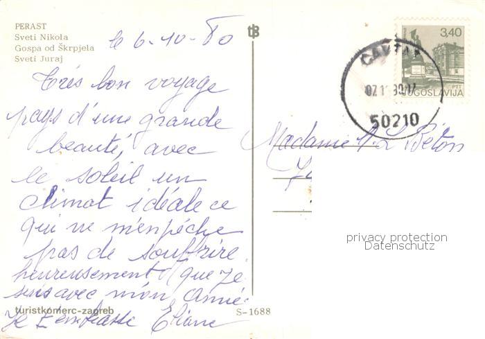 old postcard Perast Kotor Montenegro Sveti Nikola Kirche Insel Luftbild postalisch gelaufen Erhaltung siehe scans [FriedD77]