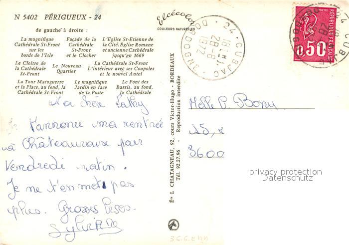 13508742 carte postale Perigueux Cathedrale Saint Front Tour Maraguerre postalisch gelaufen Erhaltung siehe scans [KathaD81] KatCode: 11170024324322