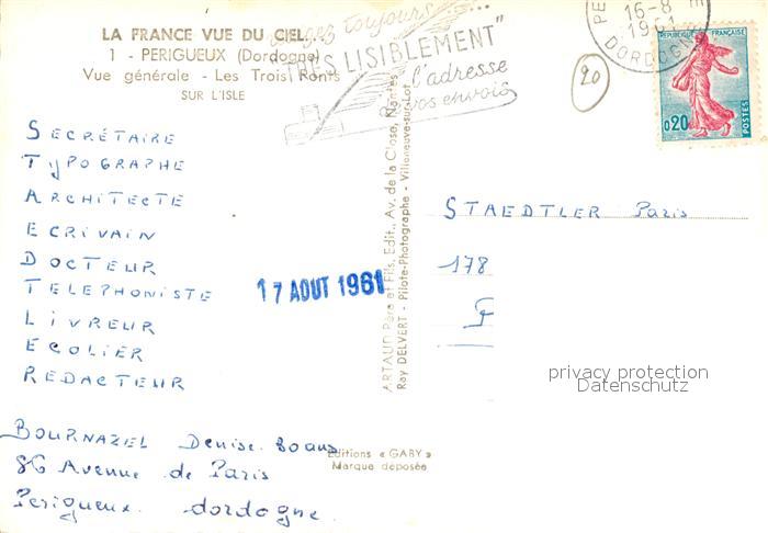 13237350 carte postale Perigueux Les trois ponts sur L Isle vue aérienne postalisch gelaufen Erhaltung siehe scans [FriedD77] KatCode: 11170024324322