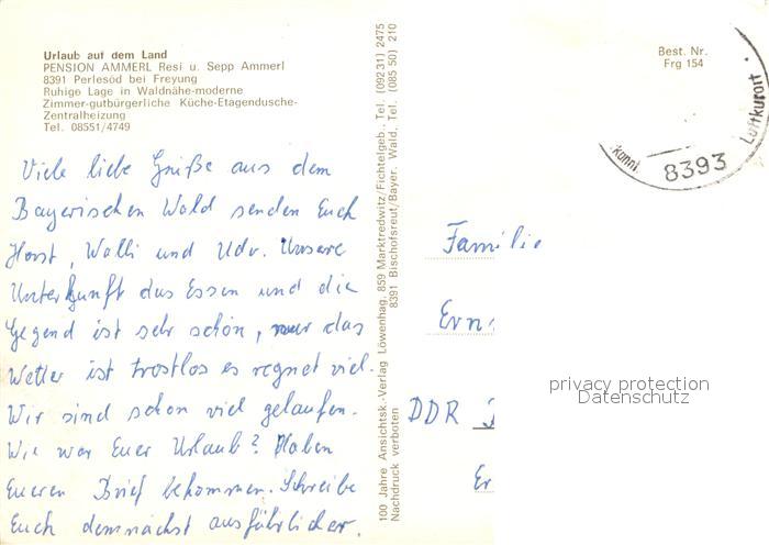 73659883 alte Postkarte Perlesoed Wald Pension Ammerl Urlaub auf dem Land Partie am Wasser postalisch gelaufen Erhaltung siehe scans [FriedD77] KatCode: 11110009272118