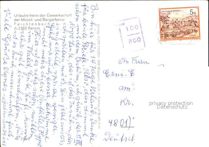 72072120 alte Postkarte Pernitz Niederoesterreich Urlauberheim Feichtenbach postalisch gelaufen Erhaltung siehe scans KatCode: 11390122032323