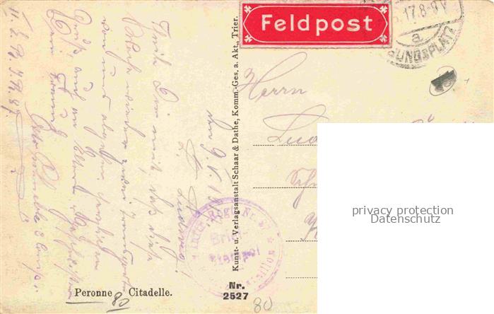 14116045 PERONNE 80 Somme Citadelle Ruines Grande Guerre Truemmer 1. Weltkrieg Feldpost postalisch gelaufen Erhaltung siehe scans [FriedD77] alte Postkarte Frie Katcode 11170080480620