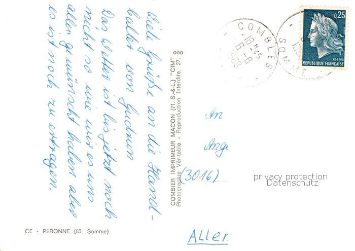 12941724 carte postale Peronne 80 Somme Eglise St Jean Hotel de Ville Le Somme La Place Commandant Louis Daudre Rue de la Gare Chateau Louis postalisch gelaufen Erhaltung siehe scans [WerneD78] KatCode: 11170080480620