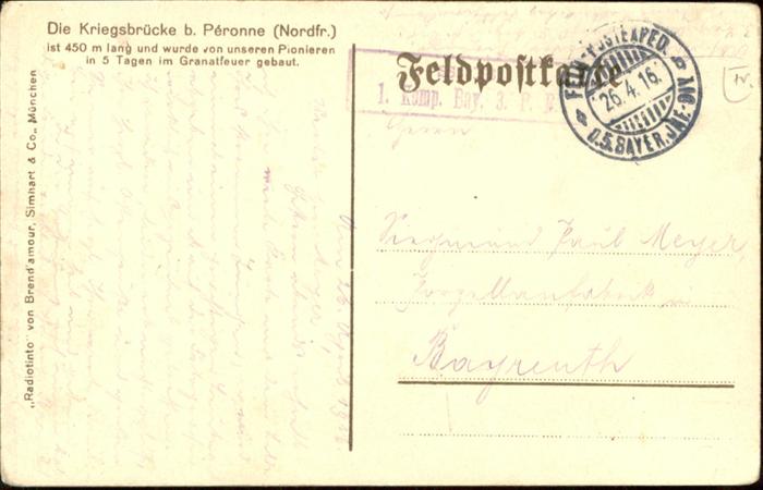 11027804 Peronne 80 Somme Kreigsbrücke KatCode 11170080480620