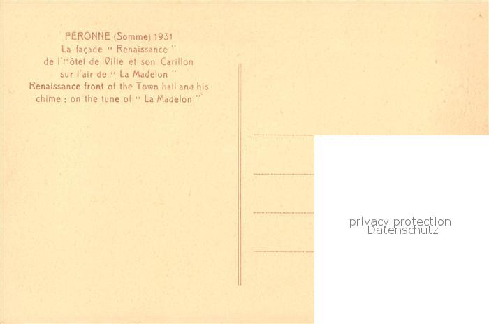 13334466 Peronne 80 Somme La facade Renaissance de Hotel de Ville et son Carillon postalisch nicht gelaufen Erhaltung siehe scans [WerneD78] KatCode: 11170080480620