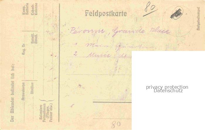14114865 PERONNE 80 Somme Marktplatz Feldpost postalisch nicht gelaufen Erhaltung siehe scans [FriedD77] Frie Katcode 11170080480620