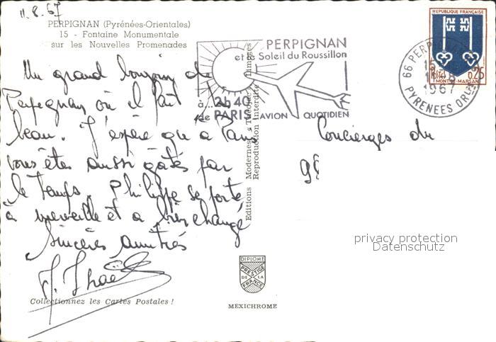 12288282 carte postale Perpignan Fontaine Monumentale Promenade postalisch gelaufen Erhaltung siehe scans KatCode: 11170066266136