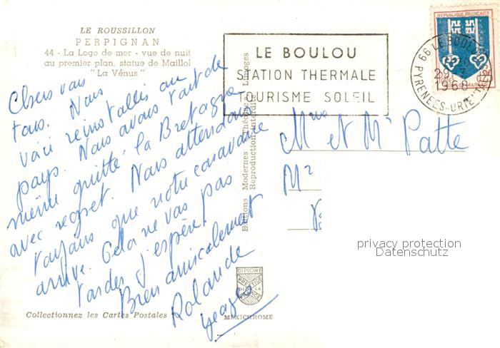 13580898 carte postale Perpignan La Loge de mer Vue de nuit au premier plan Statue de Maillol La Venus postalisch gelaufen Erhaltung siehe scans [WerneD78] KatCode: 11170066266136