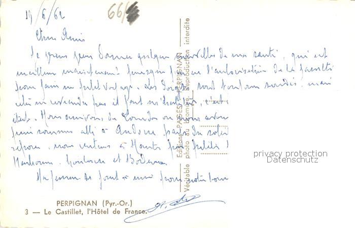 13535364 Perpignan Le Castillet Hôtel de France postalisch nicht gelaufen Erhaltung siehe scans [FriedD77] KatCode: 11170066266136