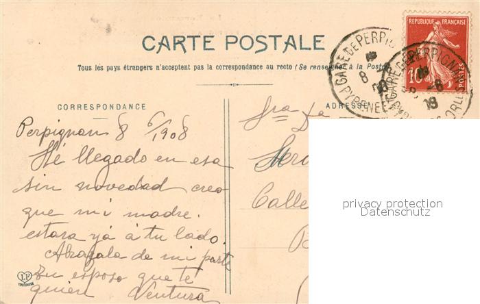 13323452 carte postale Perpignan Quai Sadi Carnot postalisch gelaufen Erhaltung siehe scans [KathaD81] KatCode: 11170066266136