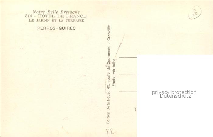 13501285 Perros-Guirec Hotel de France Le Jardin la Terrasse postalisch nicht gelaufen Erhaltung siehe scans [KathaD81] KatCode: 11170022322168