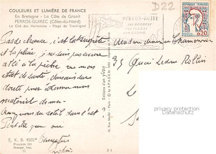 13785981 Perros-Guirec La Cite des Hortensias – Plage de Trstrignel postalisch gelaufen Erhaltung siehe scans [LiesaD40] carte postale Lies Katcode 11170022322168