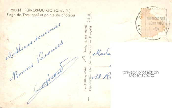 13575817 carte postale Perros-Guirec Plage de Trestignel et pointe du Chateau postalisch gelaufen Erhaltung siehe scans [FriedD77] KatCode: 11170022322168