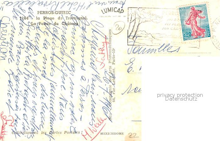 13501266 carte postale Perros-Guirec Plage de Trestrignal Ponte du Chateau postalisch gelaufen Erhaltung siehe scans [KathaD81] KatCode: 11170022322168