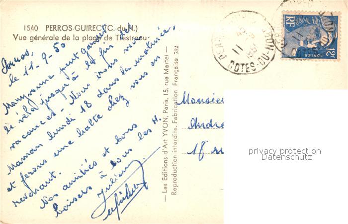 13594304 Perros-Guirec Vue Generale de la plage de Trestraou postalisch gelaufen Erhaltung siehe scans [FriedD77] carte postale Frie Katcode 11170022322168