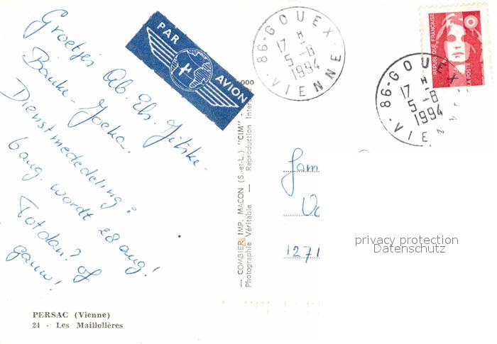 12892927 carte postale Persac Les Mailloleres postalisch gelaufen Erhaltung siehe scans [WerneD78] KatCode: 11170086286190
