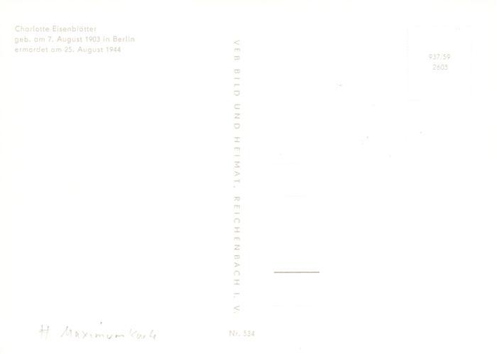 73929732 Persoenlichkeiten Charlotte Eisenblaetter postalisch nicht gelaufen Erhaltung siehe scans [IrynaD87] KatCode: 22400000000900