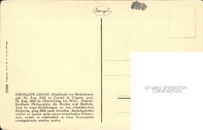 Persoenlichkeiten Nikolaus Lenau Dichter postalisch nicht gelaufen Erhaltung siehe scans