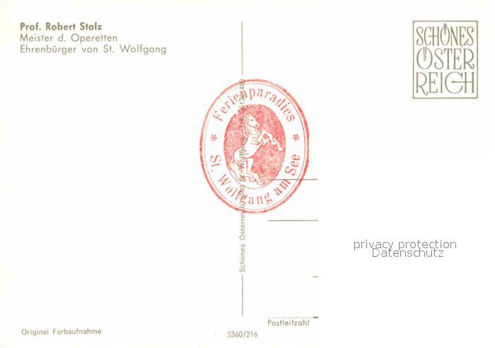 Persoenlichkeiten Robert Stolz St. Wolfgang am See postalisch nicht gelaufen Erhaltung siehe scans [PaolaD17]