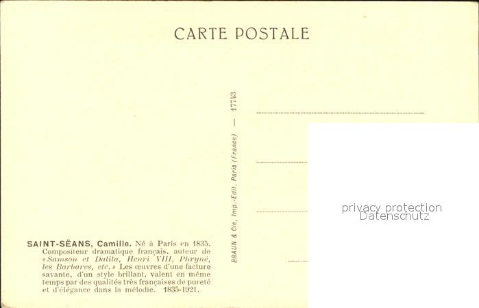 Persoenlichkeiten Saint-Seans Camille postalisch nicht gelaufen Erhaltung siehe scans