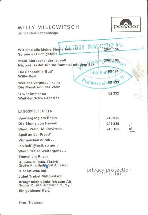 Persoenlichkeiten Willy Millowitsch Autogramm postalisch nicht gelaufen Keine Postkarte (siehe scan) Erhaltung siehe scans