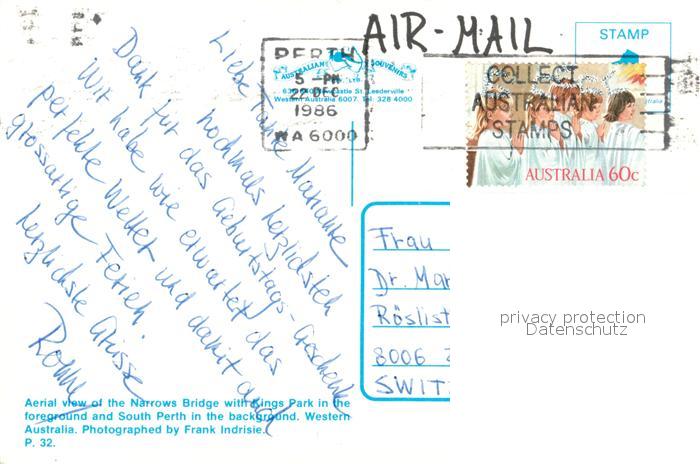 alte Postkarte Perth Western Australia Fliegeraufnahme postalisch gelaufen Erhaltung siehe scans [LiesaD40]