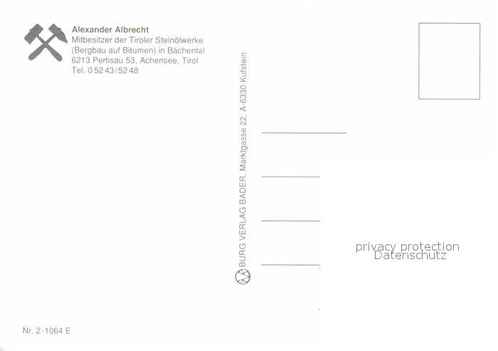 72918020 Pertisau Achensee Alexander Albrecht Bergbau auf Bitumen postalisch nicht gelaufen Erhaltung siehe scans [KathaD81] KatCode: 11390335070907