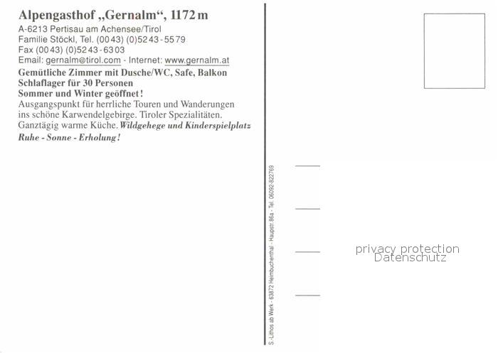 72674005 Pertisau Achensee Alpengasthof Gern Alm Wildgehege postalisch nicht gelaufen Erhaltung siehe scans [WerneD78] KatCode: 11390335070907