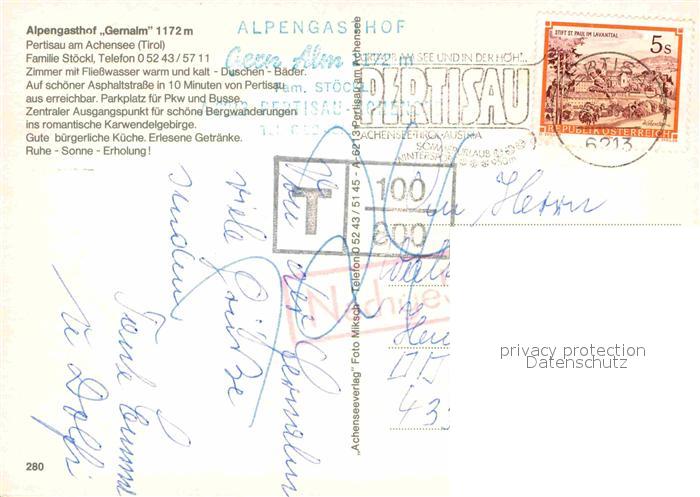 72812381 alte Postkarte Pertisau Achensee Alpengasthof Gernalm postalisch gelaufen Erhaltung siehe scans [NatalD47] KatCode: 11390335070907
