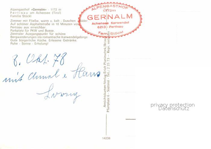 72666470 Pertisau Achensee Alpengasthof Gernalm Alpenblick postalisch nicht gelaufen Erhaltung siehe scans [FriedD77] KatCode: 11390335070907