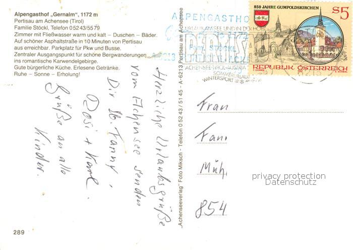 73311180 alte Postkarte Pertisau Achensee Alpengasthof Gernalm Karwendelgebirge postalisch gelaufen Erhaltung siehe scans [FriedD77] KatCode: 11390335070907