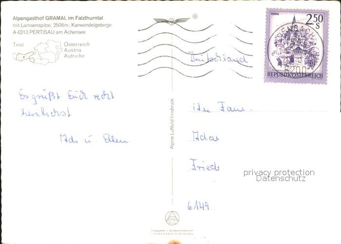 72502912 alte Postkarte Pertisau Achensee Alpengasthof Gramai postalisch gelaufen Erhaltung siehe scans KatCode: 11390335070907