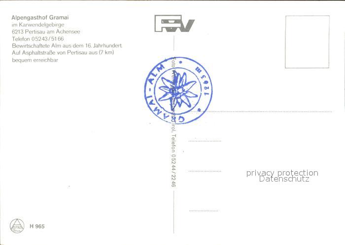 72011636 Pertisau Achensee Alpengasthof Gramai postalisch nicht gelaufen Erhaltung siehe scans KatCode: 11390335070907