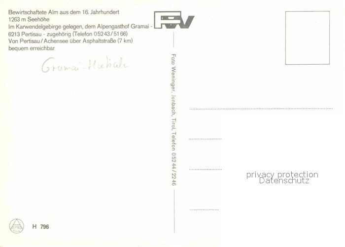 72674197 Pertisau Achensee Alpengasthof Gramai Alm 16. Jhdt. Karwendelgebirge postalisch nicht gelaufen Erhaltung siehe scans [FriedD77] KatCode: 11390335070907