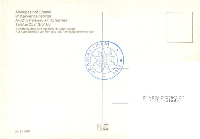 73054831 Pertisau Achensee Alpengasthof Gramai im Karwendelgebirge postalisch nicht gelaufen Erhaltung siehe scans [WerneD78] KatCode: 11390335070907