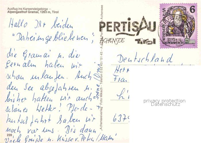 72773514 alte Postkarte Pertisau Achensee Alpengasthof Gramai Kapelle Herbststimmung Alpen Blauer Enzian postalisch gelaufen Erhaltung siehe scans [FriedD77] KatCode: 11390335070907