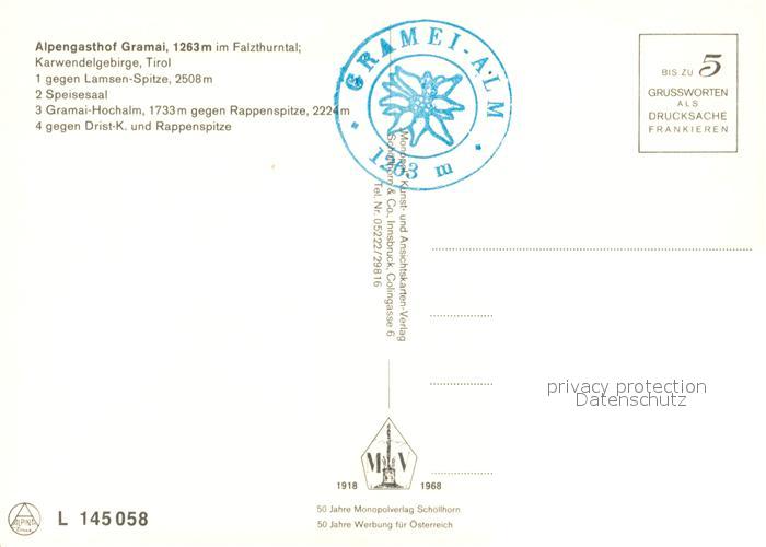 73259346 Pertisau Achensee Alpengasthof Gramai Lamsen-Spitze Rappensteinspitze postalisch nicht gelaufen Erhaltung siehe scans [NatalD47] KatCode: 11390335070907