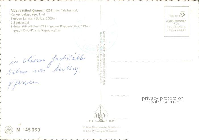 72074433 Pertisau Achensee Alpengasthof Gramai Lamsen Spitze Speisesaal Gramai Hochalm Rappenspitze Drist K postalisch nicht gelaufen Erhaltung siehe scans KatCode: 11390335070907