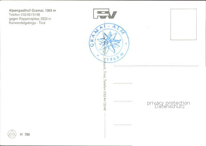 71957197 Pertisau Achensee Alpengasthof Gramai Rappenspitze Karwendelgebirge postalisch nicht gelaufen Erhaltung siehe scans KatCode: 11390335070907
