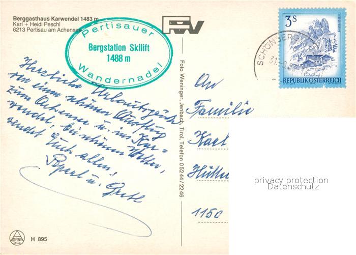 73242900 alte Postkarte Pertisau Achensee Berggasthaus Karwendel Liftstationen postalisch gelaufen Erhaltung siehe scans [KathaD81] KatCode: 11390335070907